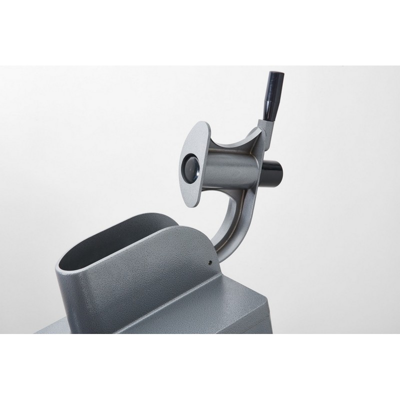 Откидная крышка и толкатель овощерезки изготовлены из пищевого алюминия, корпус – из высококачественной нержавеющей стали. Привод машины позволяет осуществлять обработку продуктов либо через серповидную загрузочную воронку, либо через круглое отверстие диаметром 52 мм для вытянутых овощей и фруктов (огурцов, бананов и т.д.) – толкателем с ручкой. После нажатия кнопки «Пуск» и обработки одного овоща или фрукта мотор автоматически останавливается и возобновляет работу лишь при следующем опускании ручки толкателя. Машина имеет регулируемые по высоте ножки.